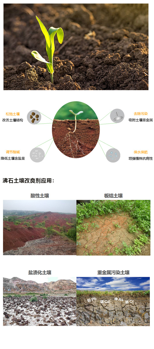 沸石土壤改良劑是以天然沸石為原料制備的功能型土壤修復調理劑。采用天然沸石經特殊工藝復合而成,充分激發天然沸石獨有的特性與功能,對板結土壤、次生鹽漬化土壤、重金屬污染土壤、放射性污染場地等具有特殊功效。采用沸石技術實施土壤修復,成本低、見效快、物理修復、無二次污染!